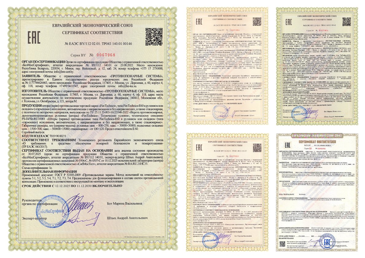 - Штора дымозащитная (противодымная) FireTechnics модели FireTechnics-E60